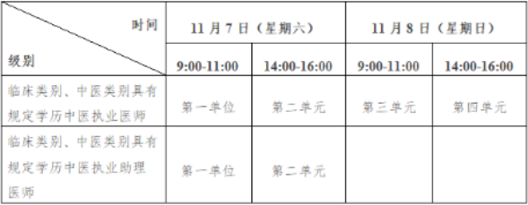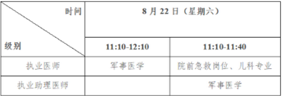 考试实行计算机化考试,军队现役人员、文职人员加试军事医学,院前急救岗位和儿科专业加试相应内容。统一考试时间如下: