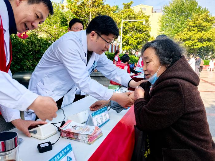 医务人员免费为市民测量血压,提供健康咨询,围绕春季传染病防控、慢性病管理、合理膳食、科学运动、戒烟限酒、心理平衡等主题,开展了健康知识宣传。