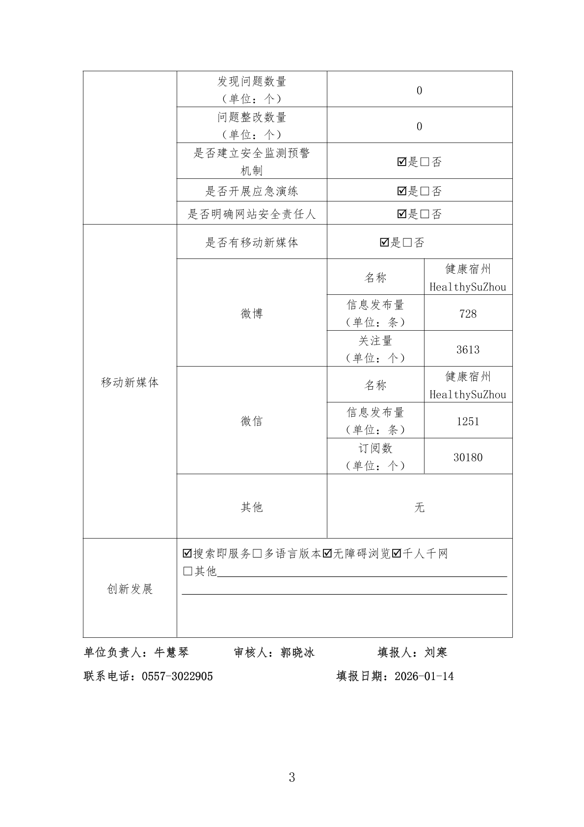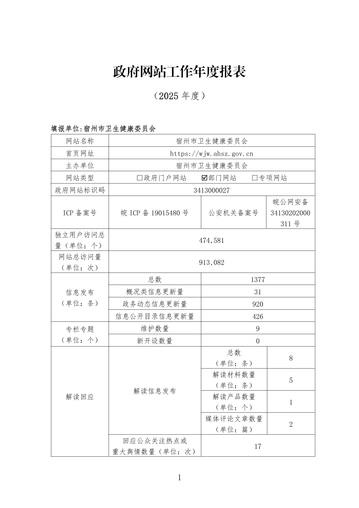 宿州市卫生健康委员会2025年度政府网站工作报表